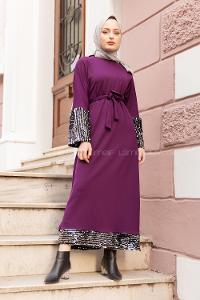 Modalamelif Kuşaklı Pul Payet Elbise Mürdüm