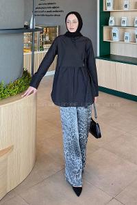 Lamelif Kuşaklı Tesettür Tunik Siyah