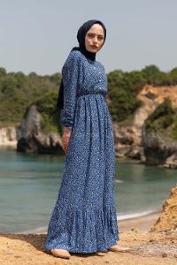 Lamelif Taş Detaylı Tesettür Elbise Lacivert