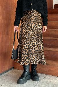 Lamelif Leopar Detaylı Saten Etek