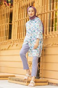 lamelif Piliseli Uzun Gömlek Mavi