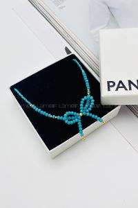 Lamelif Mavi Boncuklu Kurdele Kolye