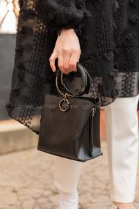 Modalamelif Metal Halka Detaylı Oval Tasarım El Çantası Siyah