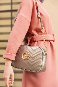 Lamelif Kapak Kilitli Kapitone Çanta Vizon-Gri