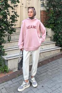 Lamelif Mıamı Baskı Detaylı Sweat Pudra
