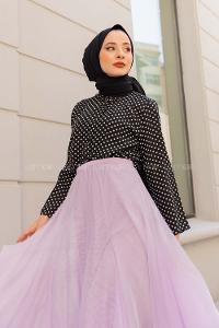 Lamelif Omuz Vatka Detaylı Tesettür Gömlek Siyah