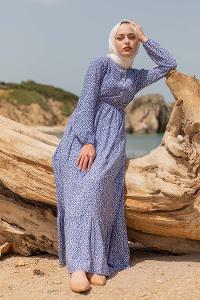Modalamelif Mini Yaprak Desenli Elbise Mavi