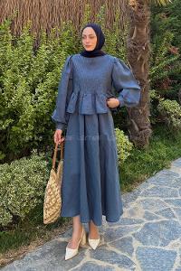 Lamelif Modal Etekli Tesettür Takım İndigo