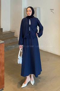 Lamelif Modal Kıraş Gömlek-Etek Takım Lacivert