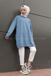 Lamelif Yırtmaç Detaylı Sweat Saks Mavisi