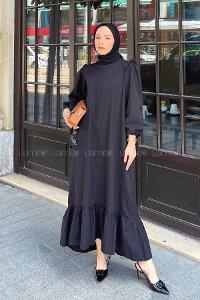 Lamelif Omuz Fırfır Detaylı Tesettür Elbise Siyah