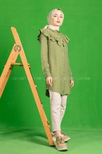 Modalamelif Omuzu Fırfırlı Gömlek Haki