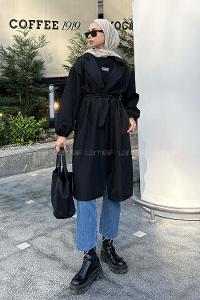 Lamelif Klasik Kuşaklı Trençkot Siyah