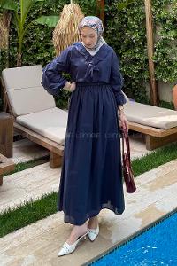 Lamelif Garni Yaka Etekli Takım Lacivert