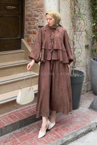 Lamelif Garni Yaka Etekli Takım Acı Kahve