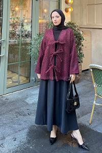 Lamelif Dekoratif Cep Detaylı Tesettür Ceket Bordo