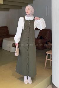 Lamelif Önü Boydan Düğmeli Salopet Asker Yeşili