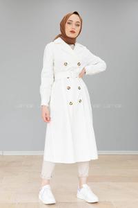 Modalamelif Önü Düğmeli Belden Bağlamalı Trenç Ekru