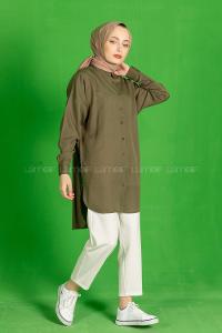 Modalamelif Önü Düğmeli Diagonel Tunik Haki