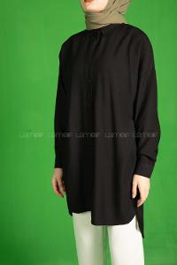 Modalamelif Önü Düğmeli  Diagonel  Tunik Siyah