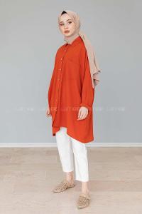 Modalamelif Önü Düğmeli Gizli Cep Detaylı Gömlek Kiremit