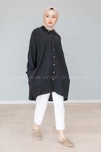 Modalamelif Önü Düğmeli Gizli Cep Detaylı Gömlek Siyah