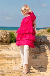 Lamelif Flores Fırfırlı Tunik Şeker Pembesi