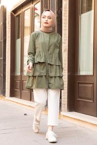 Modalamelif Önü Düğmeli Kat Kat Gömlek Haki