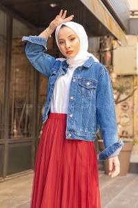 önü düğmeli, gömlek yaka, kısa kot ceket.
