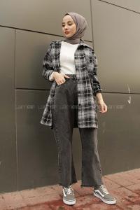 Modalamelif  Önü Düğmeli Oduncu Gömleği Gri Beyaz