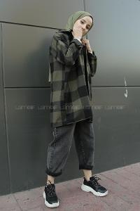 Lamelif Omuz Vatka Detaylı Tesettür Gömlek Yağ Yeşili