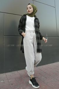 Lamelif Omuz Vatka Detaylı Tesettür Gömlek Yağ Yeşili