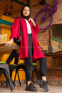Modalamelif Önü Düğmeli Yan Cepli Gömlek Bordo