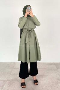 Modalamelif Önü Düğmeli Yazlık Trenç Haki