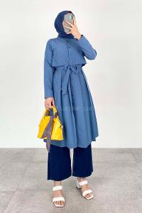 Modalamelif Önü Düğmeli Yazlık Trenç İndigo