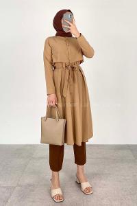 Modalamelif Önü Düğmeli Yazlık Trenç Sütlü Kahve