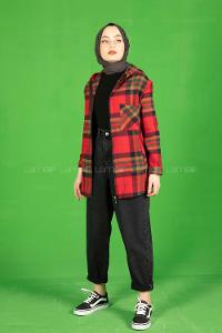 Modalamelif Önü Fermuarlı Cepli Gömlek Kırmızı
