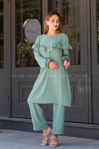 Modalamelif Önü Fırfırlı İkili Ayrobin Takım Mint Yeşili