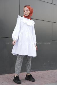 Lamelif Lopez Balon Kol Tunik Beyaz