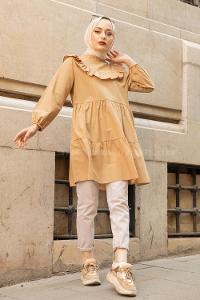 Modalamelif Önü Fırfırlı Tunik Camel