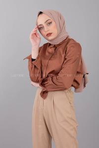 Lamelif Yaka Fular Detaylı Gömlek Acı Kahve