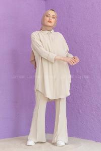 Modalamelif Önü Gizli Düğmeli İspanyol Takım Taş Rengi
