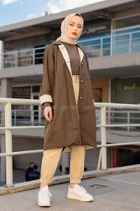 Modalamelif Önü Gizli Düğmeli Trenç Haki