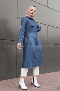 Modalamelif Önü Gizli Fermuarlı Kapşonlu Kap Kot Mavisi