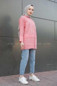 Modalamelif Önü Katlı Keten Gömlek Şeker Pembesi