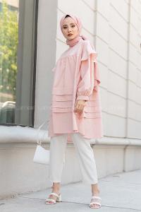 Modalamelif Önü Katlı Salaş Tunik Pudra