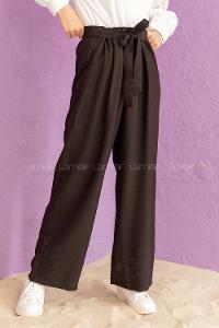 Modalamelif Önü Kuşaklı Salaş Pantolon Siyah