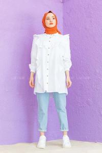 Lamelif Manşeti Biyeli Tunik Beyaz