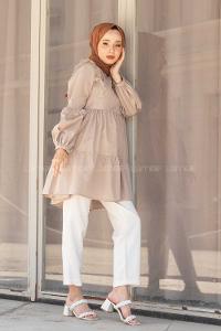Lamelif Lopez Balon Kol Tunik Sütlü Kahve