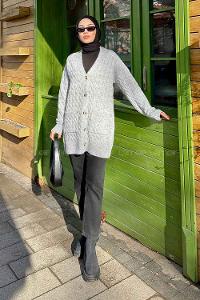 Lamelif Salaş Dokulu Basic Hırka Gri